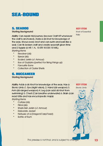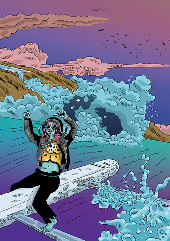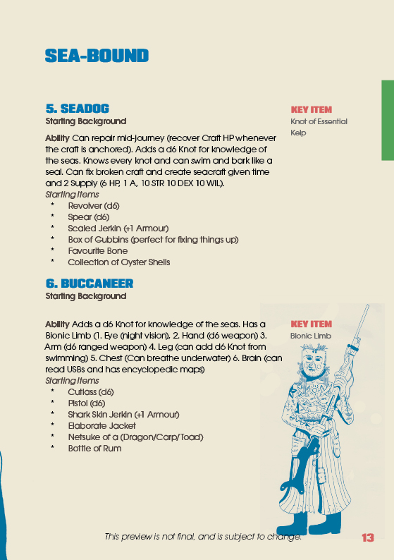 Players set sail as Windwaker meets Waterworld in this rules-light procedure-heavy TTRPG for solo and group play. Explore a near-future hazardous but hopeful world, smashing Corpo Schemes while discovering Monsters and Mecha lurking beneath the waves, guzzling ambergris to learn new spells. Explore an optimistic new world, weirdhope not grimdark.