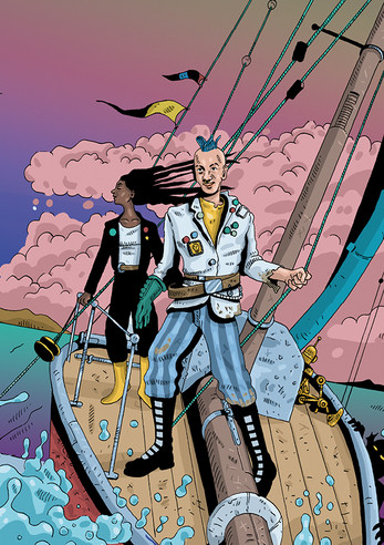 Uncover an uncanny and colourful world: a post-post-apocalyptic landscape, where coral covers submerged silos and tech is rediscovered and repurposed for this new world. Sailing across a vast archipelago of sunken cities and volcanic islands, punks will brave the Abyssal seas, confront mutated manta ray and renegade replicants, and delve into the depths of billionaire’s bunkers to salvage USBs of information about the world before.